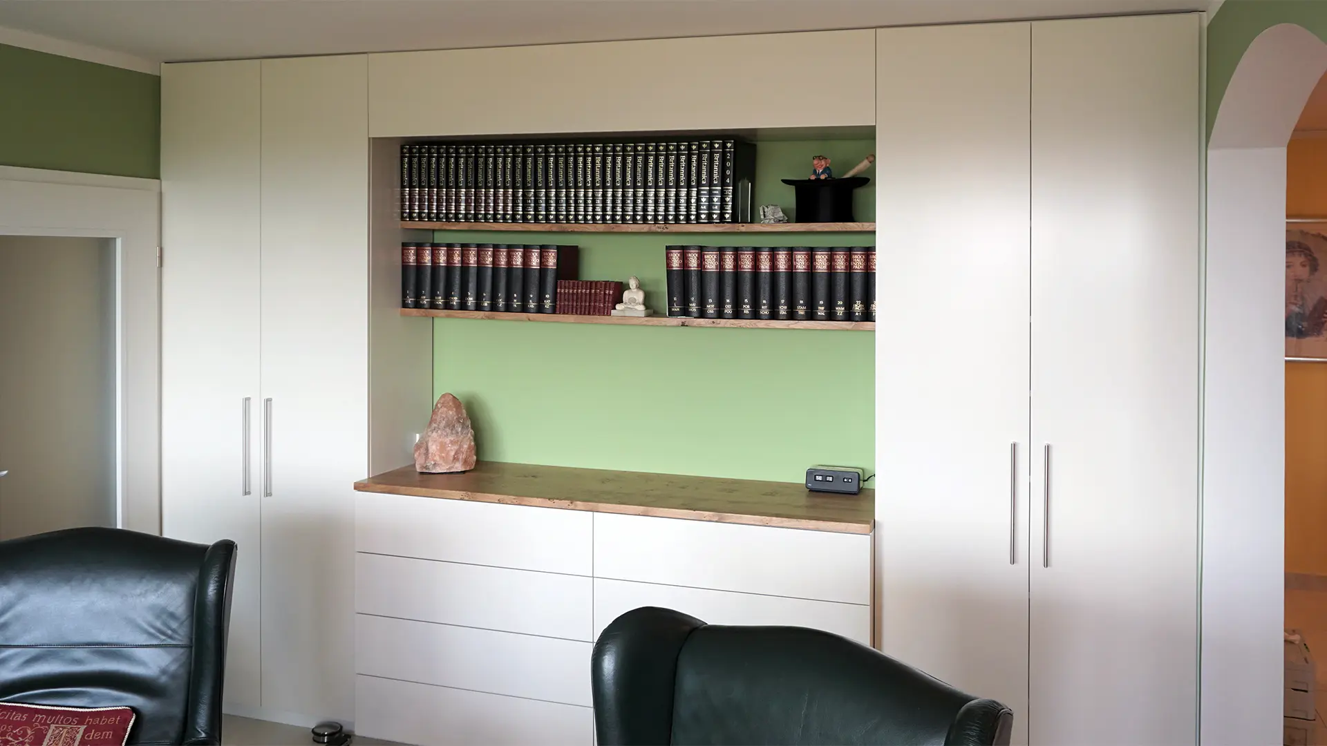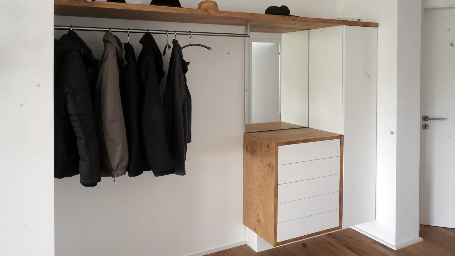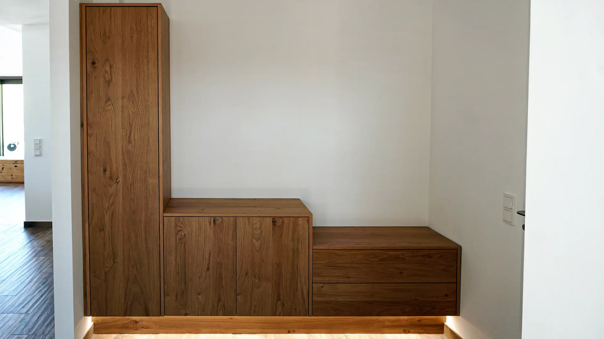 Dielenschrank in Lack weiß schubkästen Asteiche