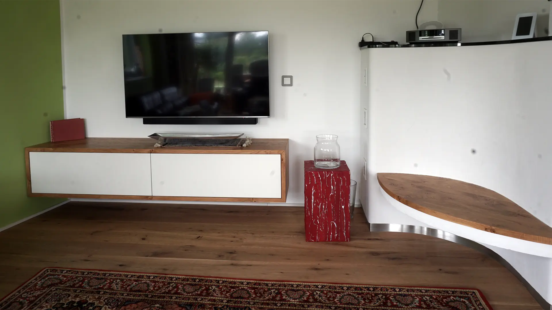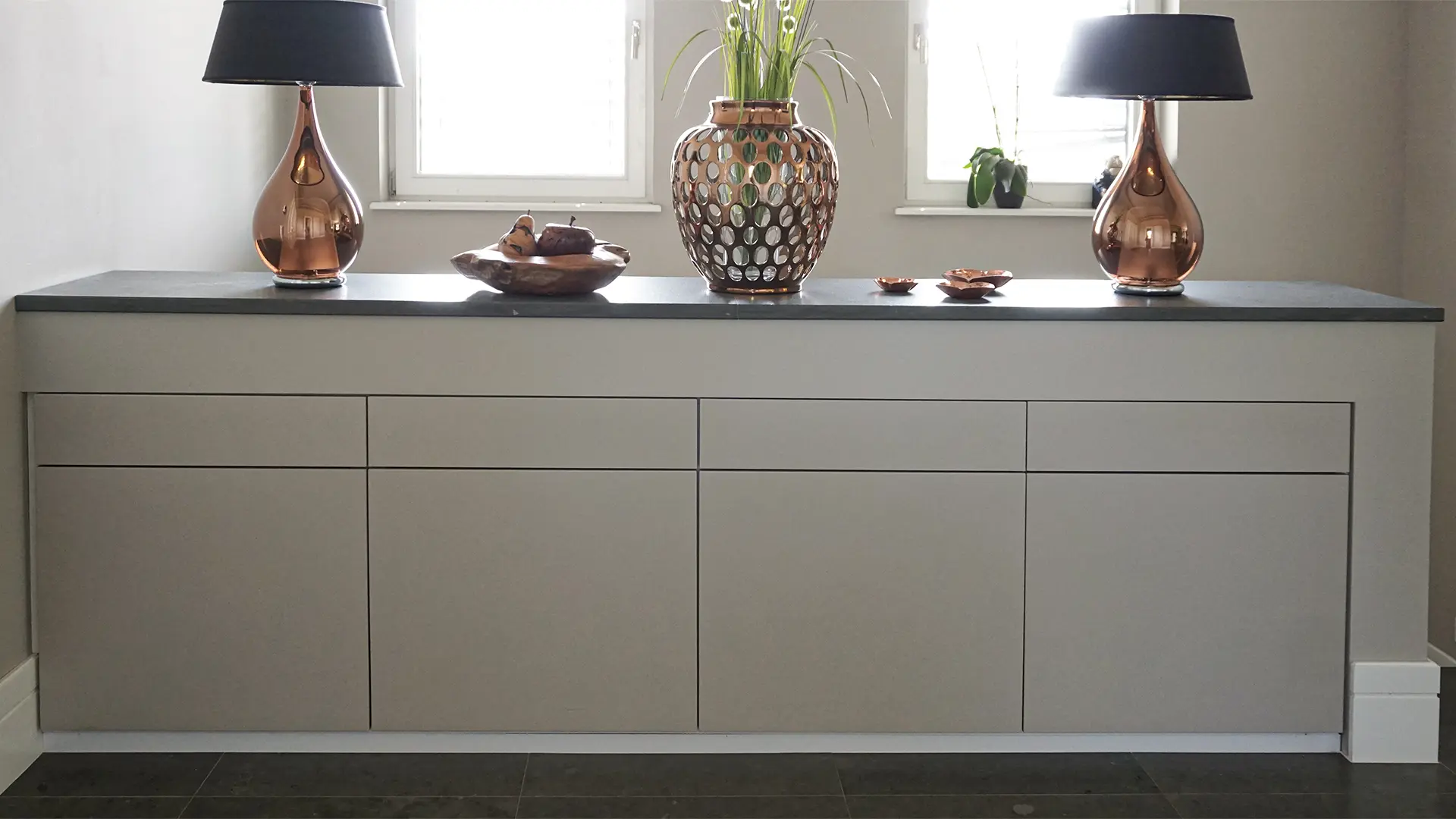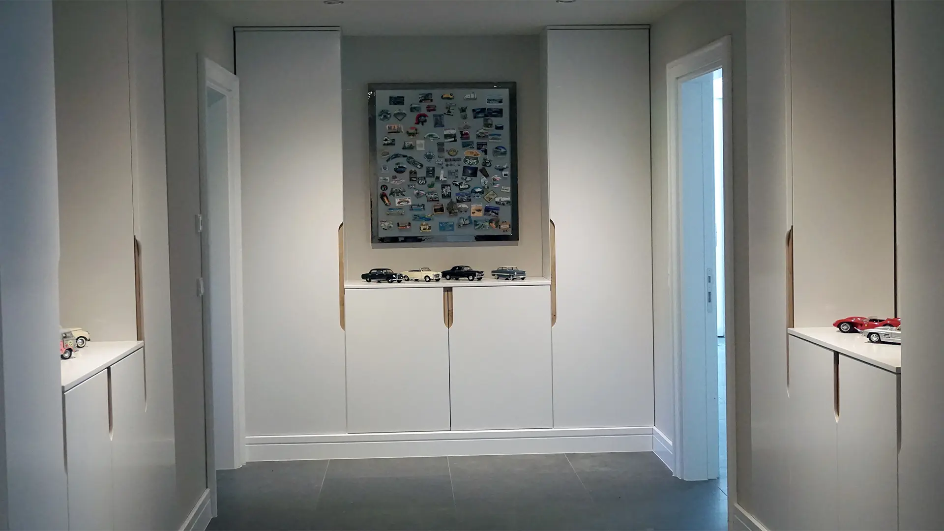 Dielenschrank in Lack weiß schubkästen Asteiche